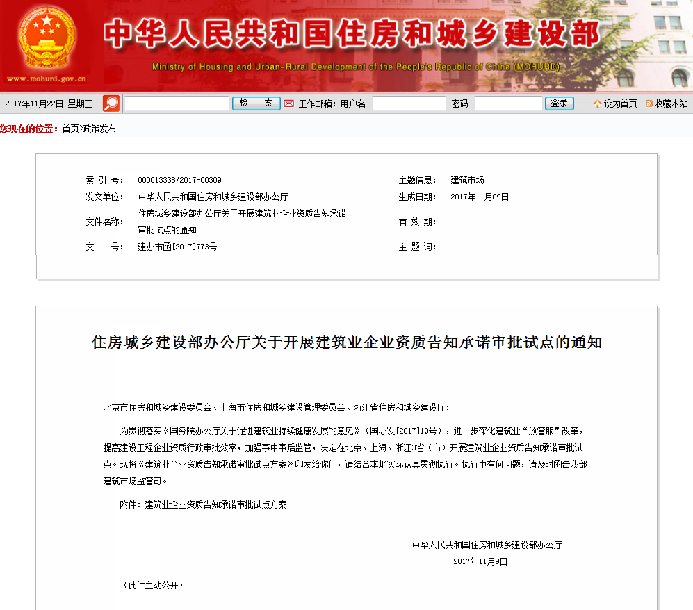 為貫徹落實(shí)《國(guó)務(wù)院辦公廳關(guān)于促進(jìn)建筑業(yè)持續(xù)健康發(fā)展的意見(jiàn)》(國(guó)辦發(fā)[2017]19號(hào)),進(jìn)一步深化建筑業(yè)簡(jiǎn)政放權(quán)改革,提高建設(shè)工程企業(yè)資質(zhì)行政審批效率,完善建筑市場(chǎng)監(jiān)管體系,探索推行“互聯(lián)網(wǎng)+政務(wù)服務(wù)”,制定本試點(diǎn)方案。